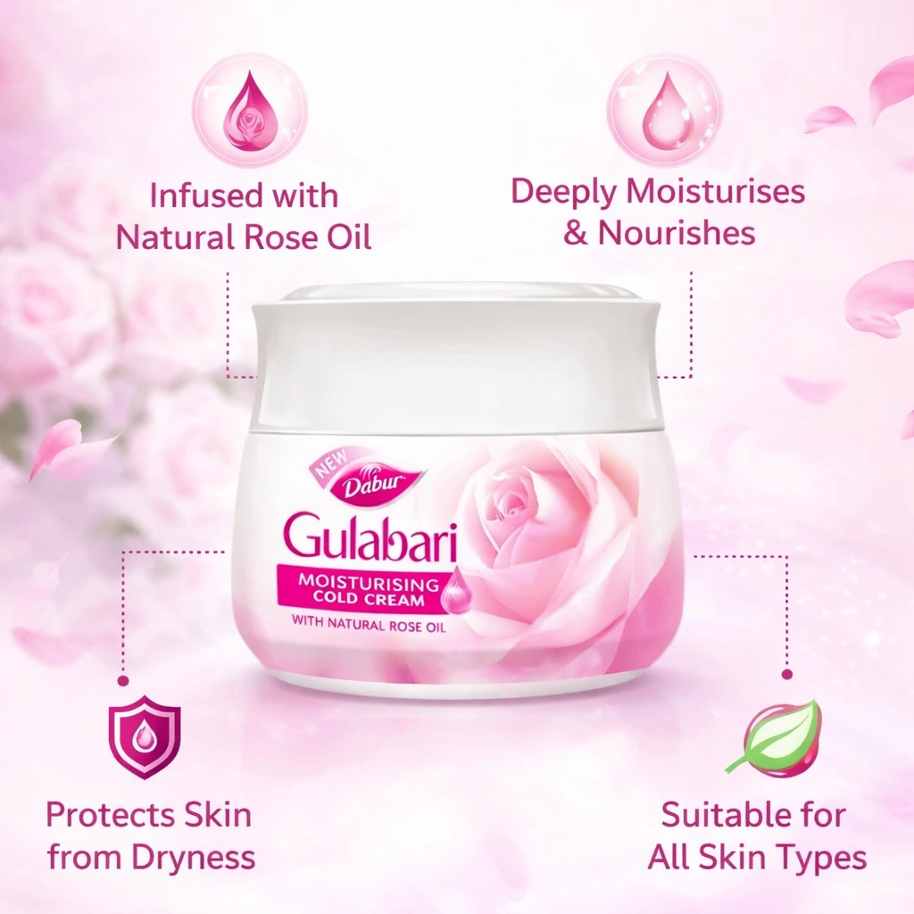 Dabur Gulabari Moisturizing Cold Cream is more than just a winter staple; it is a time-tested beauty ritual. Infused with the goodness of natural rose extracts and vitamin E, this cream is specifically formulated to combat the harshness of dry weather while leaving your skin with a signature “rose-like” radiance.