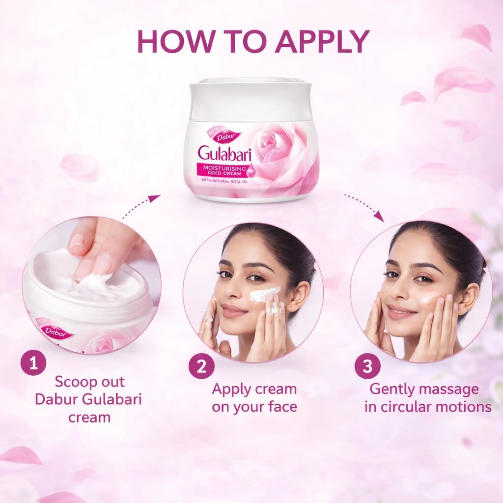 Pro Tip: For an extra boost of hydration, mix a drop of Dabur Gulabari Rose Water with the cream before applying!