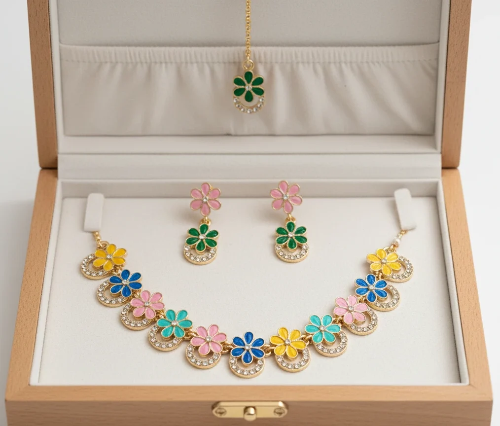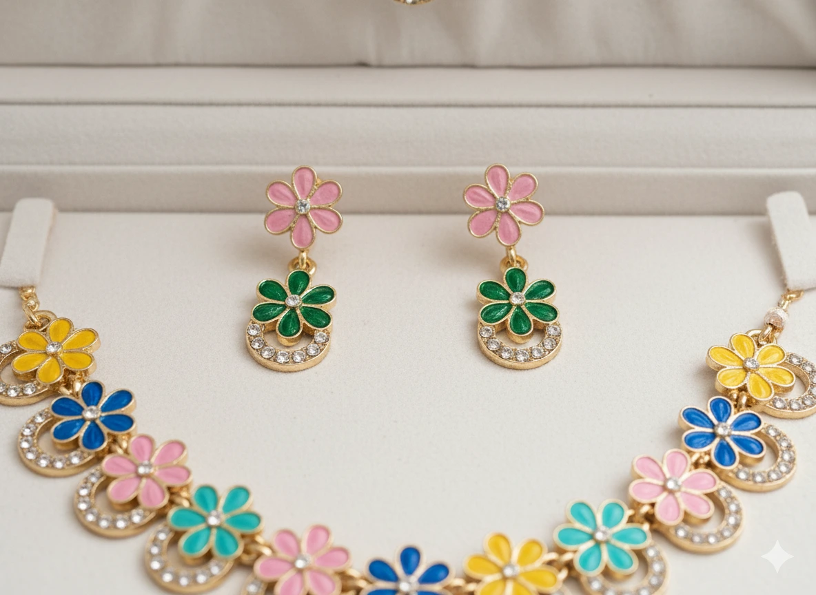 Specification: Rangoli Bloom : Multi-Color Floral Jewelry Suite